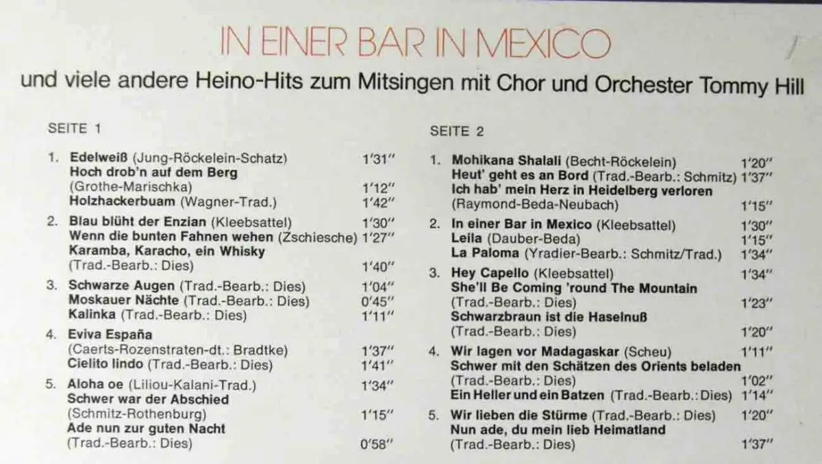 In einer Bar in Mexico und andere Heino Hits zum Mitsingen mit Chor und Orchester Tommy Hill