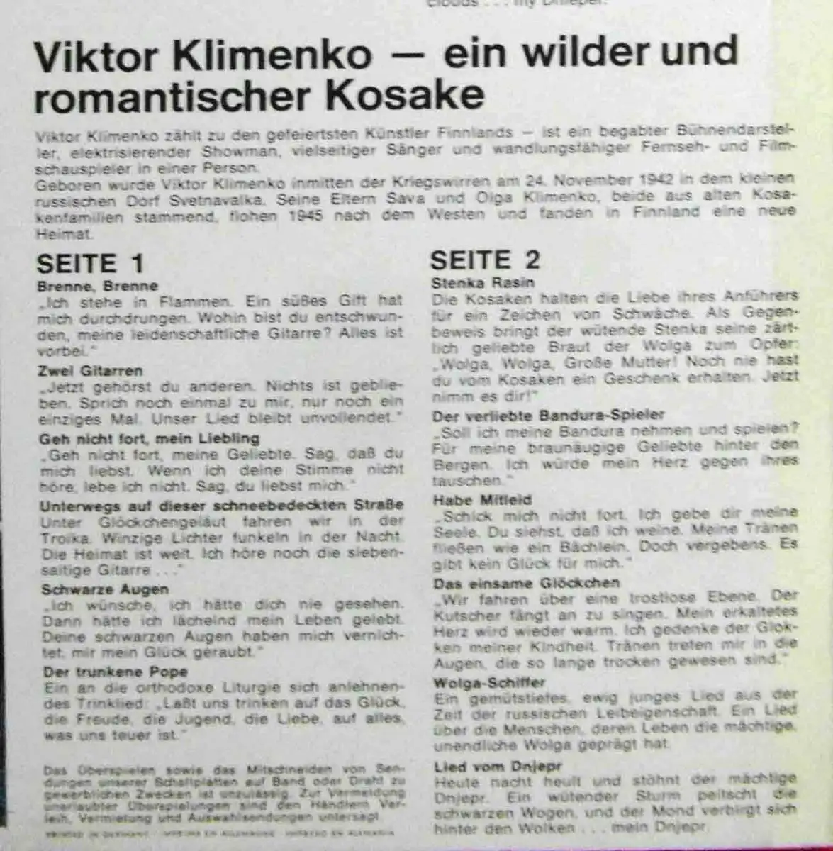 Columbia Records, sehr seltenes Originalalbum, dt. Pressung, 1971, mit Viktor Klimenko (ein wilder und romantischer Kosige / a wild and romantic cossack)
