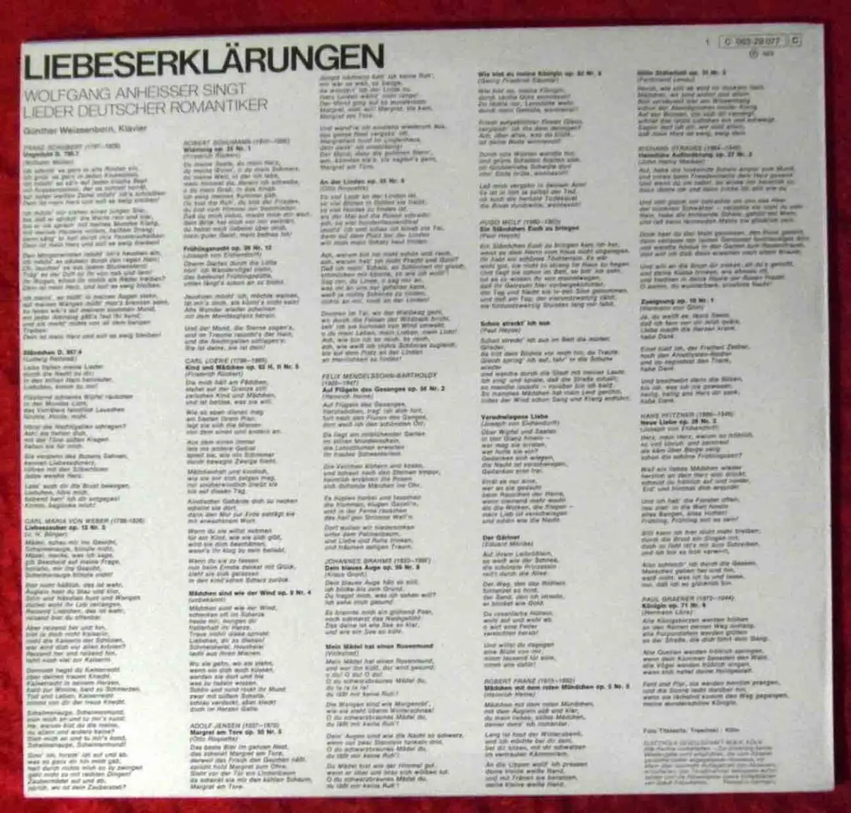 LP Wolfgang Anheisser: Liebeserklärungen (EMI 1C 063-29 077) D 1972)