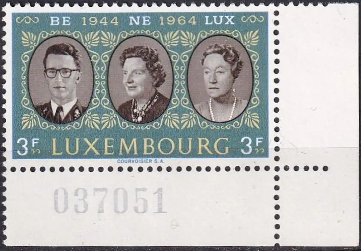 LUXEMBURG 1964 Mi-Nr. 700 Eckrand mit Bogennummer ** MNH