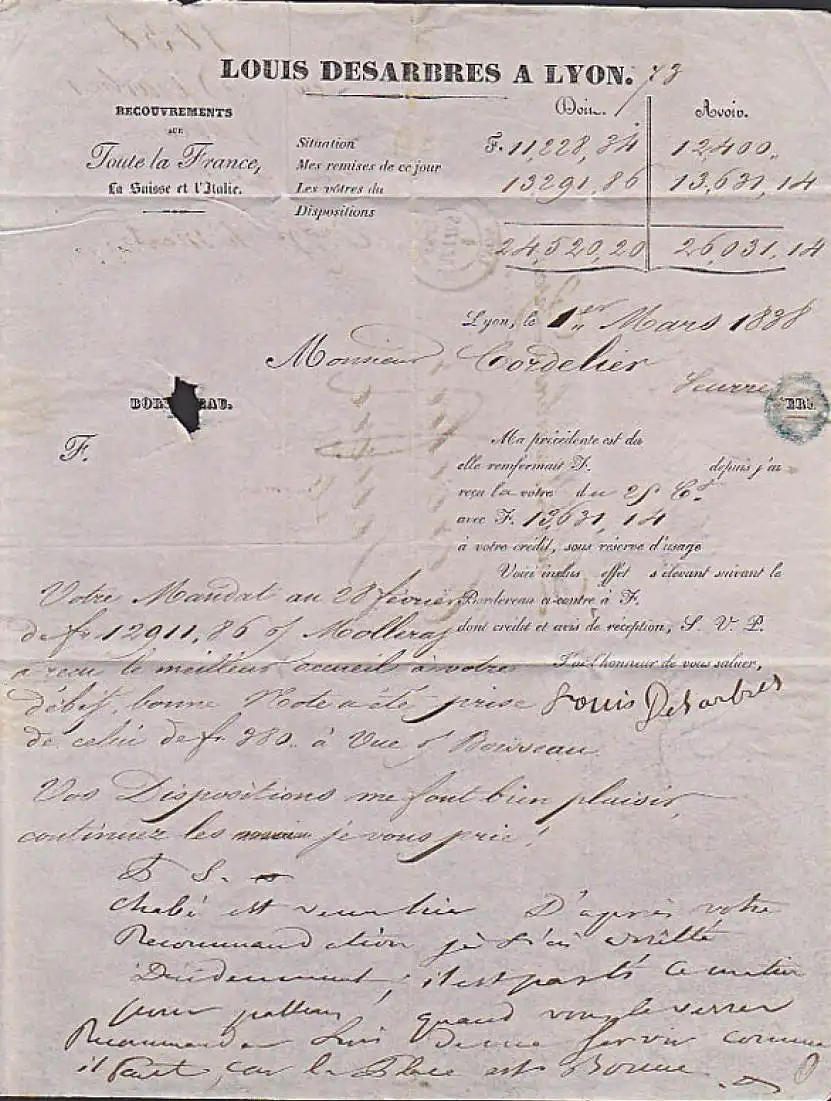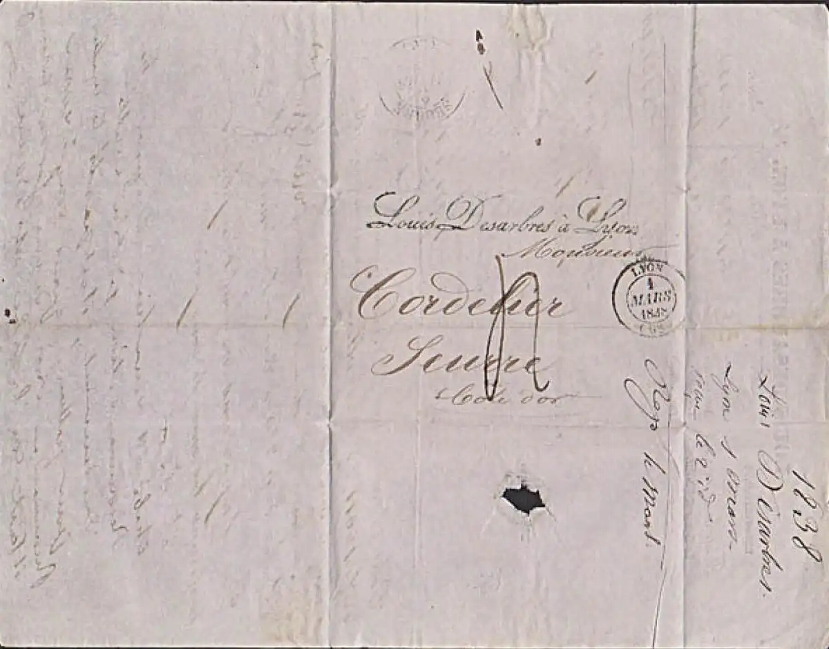 LYON nach Seurre Abs. "Louis Desarbres a Lyon" Frankreich Altbrief 1838