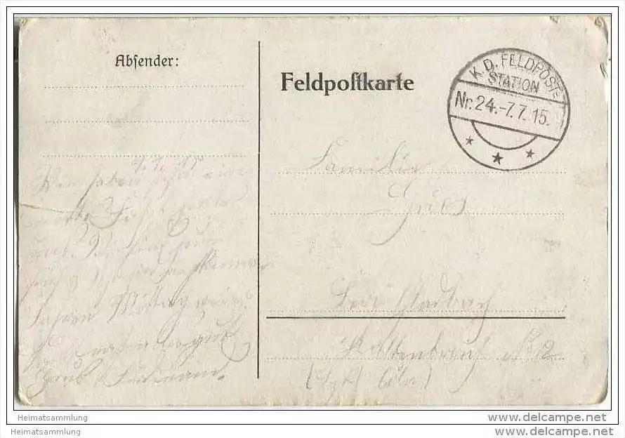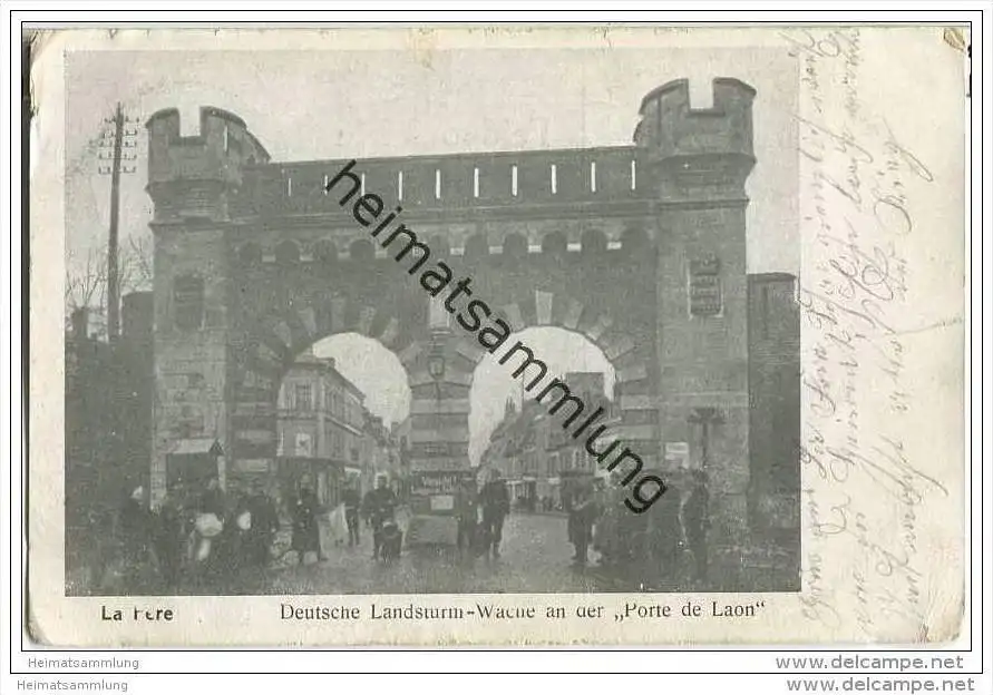 La Fere - Deutsche Landsturmwache an der Porte de Laon - Feldpost - Gebrauchsspuren - Einriss rechts (G24583) gel. 1915