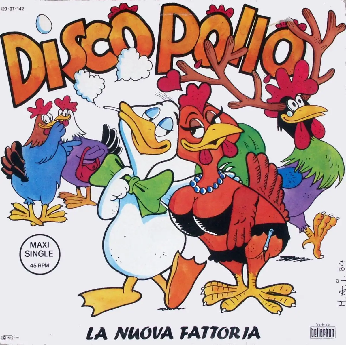 12" Maxi La Nuova Fattoria - Disco Pollo, Label beschriftet, Zustand Platte VG+ Hülle VG; Made in Germany 1985 Bellaphon 120.07.142, Tracks 5:45, Instr. 5:25