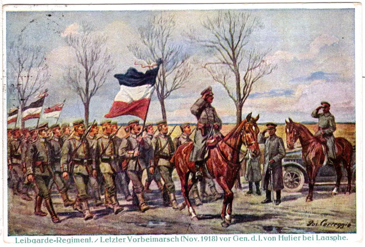 Laasphe, General Hutier, Vorbeimarsch Leibgarde Regiment, gebr. Farb-AK