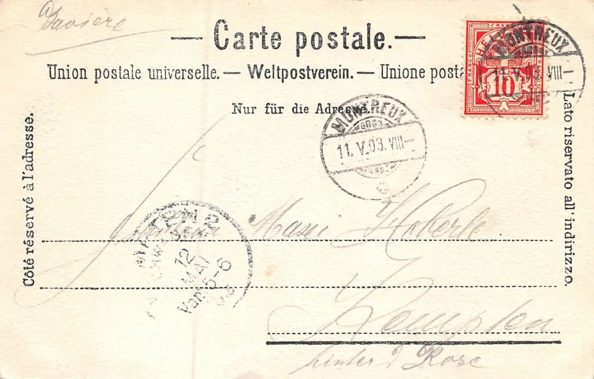 Rückseite: gelaufen 1903 von Montreux nach Kempten (Schwaben)