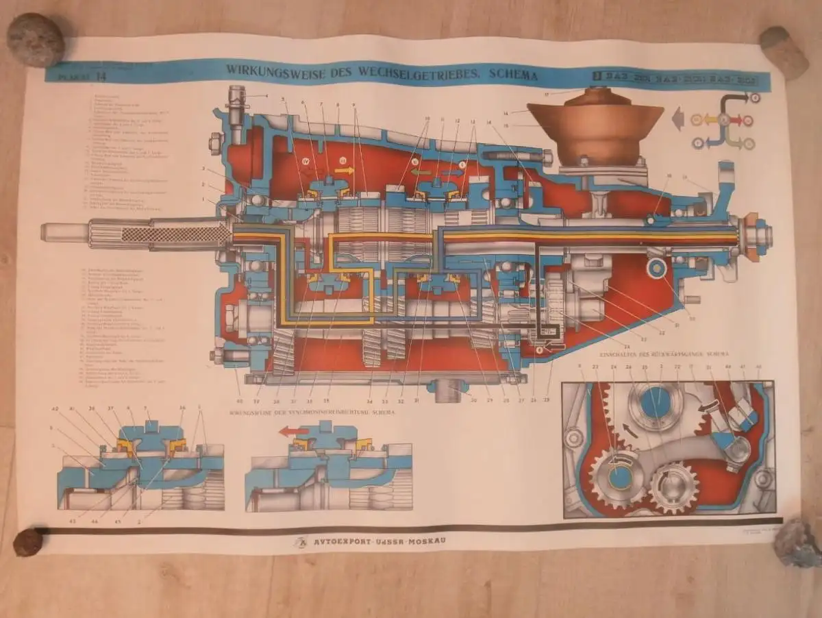 Lada BAS 2101 - großes altes Plakat - Getriebe Schaltung, Schautafel , UDSSR , DDR , Oldtimer , Poster , Russland !! RAR