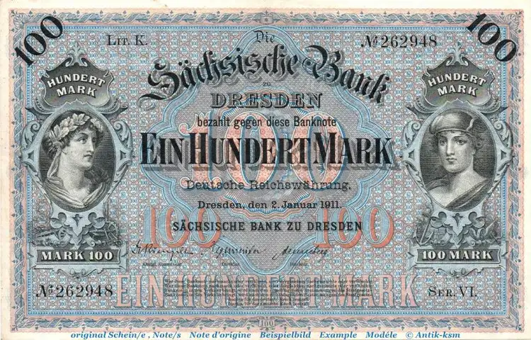 Reichsbanknote über Einhundert Mark von 1911 , Länder- und Privatbanknoten , SachsenGrabowski / Rosenberg / Pick : SAX-8 / 746 / S.952