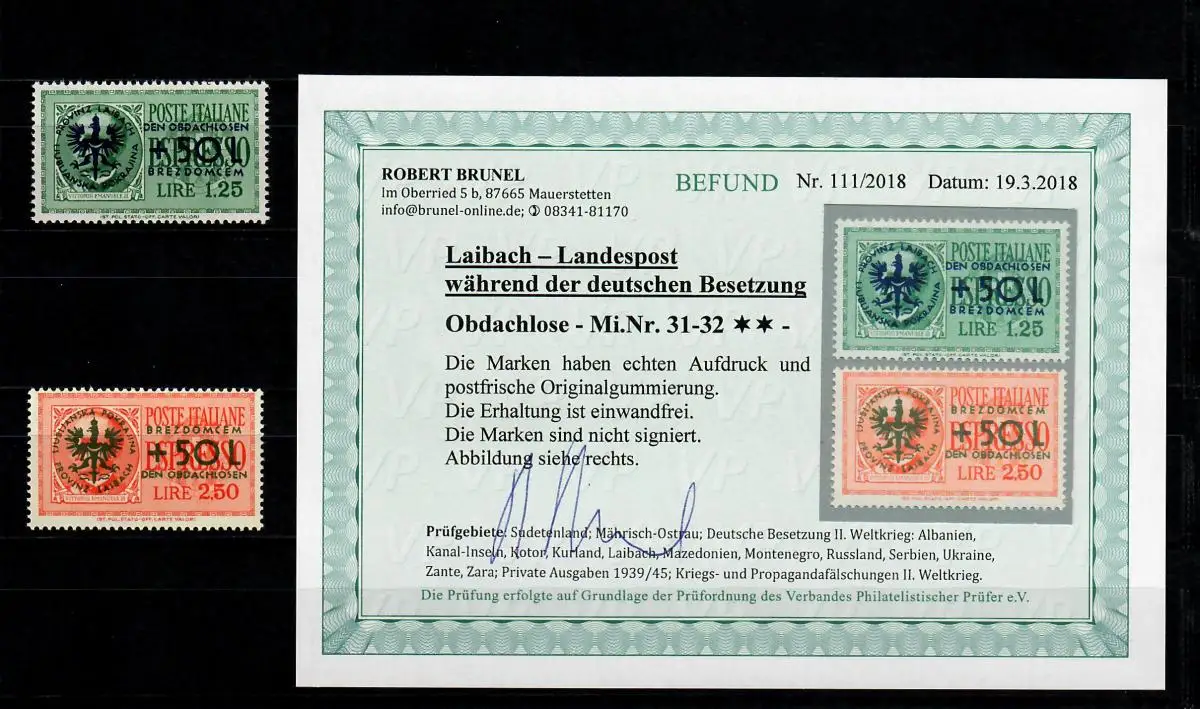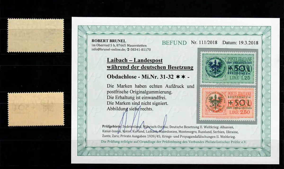 Laibach: MiNr. 31-32, Obdachlose, postfrisch, **