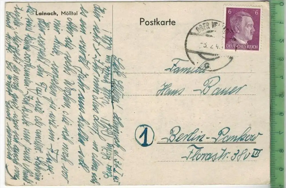 Lainach, Mölltal-1945, - Verlag: -----------, POSTKARTE mit Frankatur, mit Stempel, 3.2.45 Erhaltung: I-II, Karte wird in Klarsichthülle verschickt. (H)
