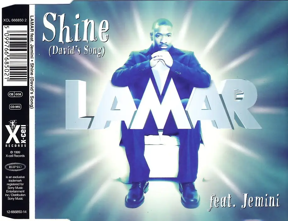 CD Single Lamar - Shine David's Song feat. Jemeni, Zustand CD M- Hülle M-; Made in Austria 1999 X-Cell Epic 666850 2, Tracks Radio Mix 3:41, Let Your Lovelight Shine [The Funky Club Radio Mix] 3:47, Maxi Vers. 6:07, Let Your Lovelight Shine [Mellow Vers.] 3:59, Let Your Lovelight Shine [A Cappella Vers.] 2:48