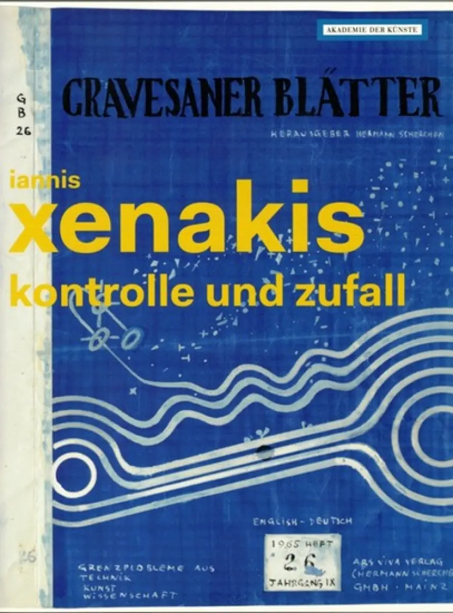 Titel: Kontrolle und Zufall - Iannis Xenakis: Komponis, Archtekt, Visionär. Herausgegeben im Auftrag der Akademie der Künste, Berlin. Anlässlicher der [gleichnamigen] Ausstellung 7. September bis 27. November 2011
