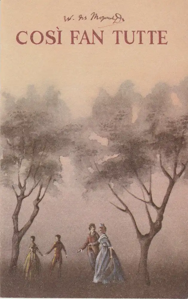 Die Schule der Liebenden. Komische Oper. Text von Lorenzo da Ponte. Musik: Wolfgang Amadeus Mozart. Musikalische Leitung: Joachim Widlak. Inszenierung: Andreas Baumann. Bühne: Eberhard Söhnel. Kostüme: Eva Christ. Mitwirkende: Elga Fischer / Barbara Streber, Hanna Blechschmidt / Annelott Damm, Siegfried Baubkus / Werner Opitz, Peter Menzel / Dieter Schwartner, Sigrid Ballhaus / Angelika Seibt, Rold Tomaszewski / Gerd Wolf - Schlüsselwörter: Theaterprogramm, Opernprogramm, Ballettprogramm, Musicalprogramm, Konzertprogramm, Theatermemorabilia, Programmhefte Sammlung, deutsche Theatergeschichte.