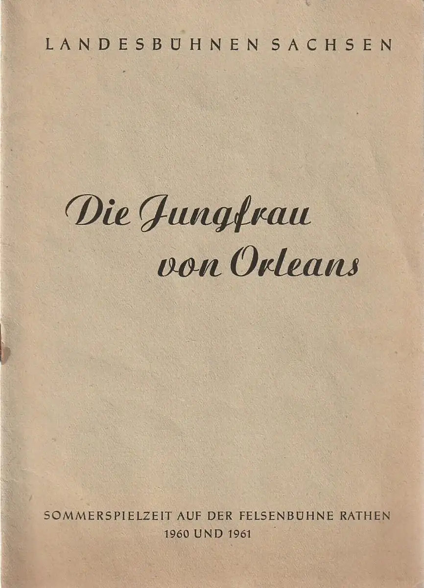 Landesbühnen Sachsen, Rudi Kostka, Dieter Anderson: Programmheft Friedrich Schiller DIE JUNGFRAU VON ORLEANS Sommerspielzeit auf der Felsenbühne Rathen 1960 und 1961.