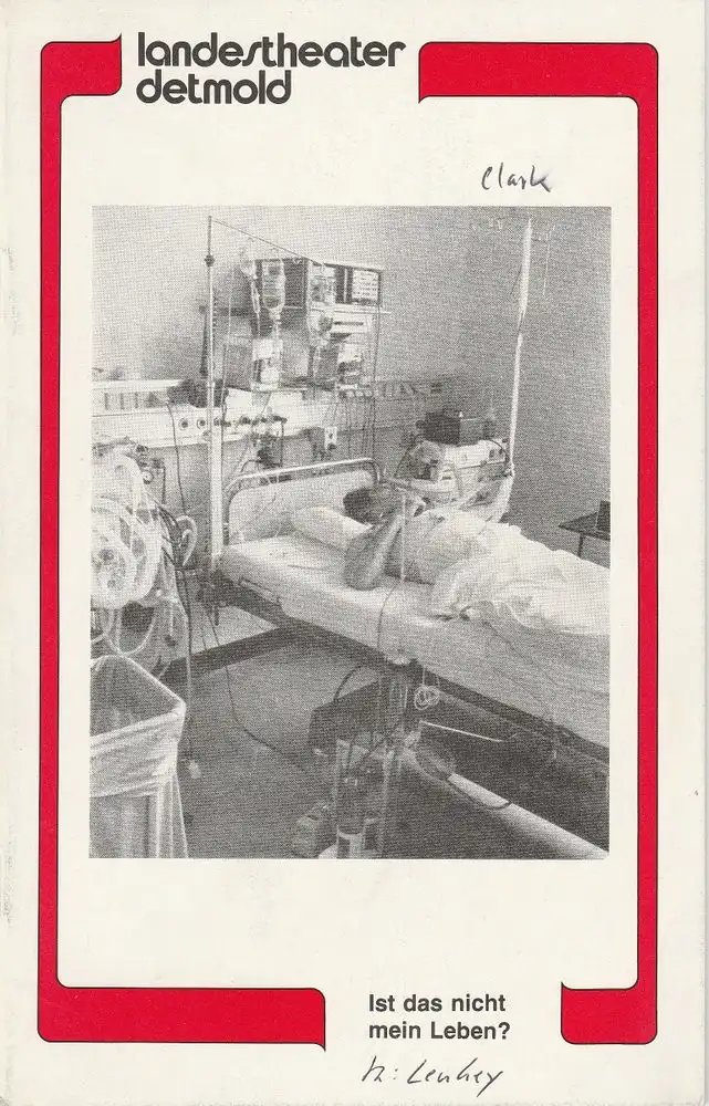 Whose Life is it anyway? Inszenierung: Robert Lenkey. Bühnenbild: Helmut Günther / Robert Lenkey. Kostüme: Erika Sperlich. Mitwirkende: Ulrich Holle / Robert Lenkey, Sylvia Menz, Evelyn Plank, Achim Brock, Michaela Klarwein, Wolfgang Holzmann, u.a. - Theaterprogramm, Opernprogramm, Ballettprogramm, Musicalprogramm, Konzertprogramm, Theatermemorabilia, Programmhefte Sammlung, deutsche Theatergeschichte.