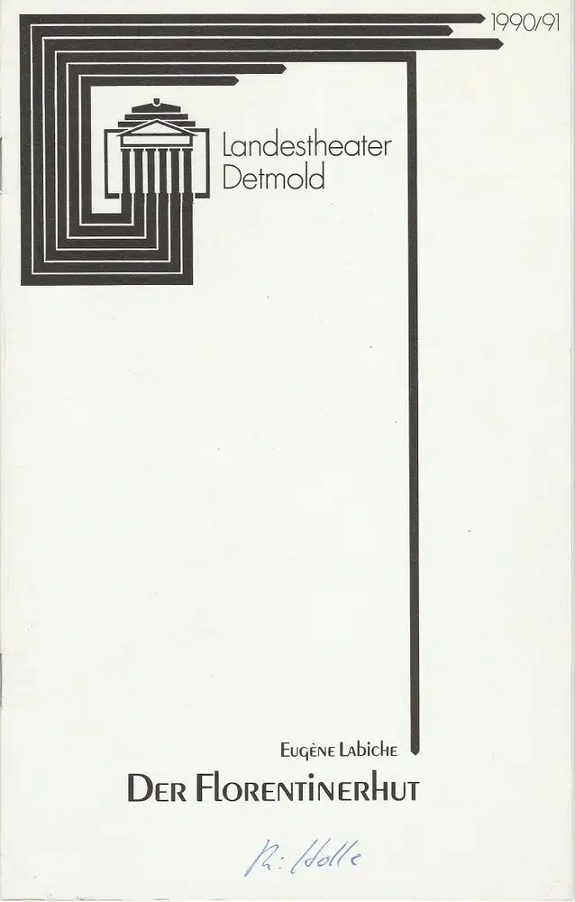Landestheater Detmold, Ulf Reiher, Norbert Ebel: Programmheft Eugene Labiche DER FLORENTINERHUT. Premiere 26. Mai 1991 Spielzeit 1990 / 91 Heft 15 Spielzeit 1991 / 92 Heft 1.