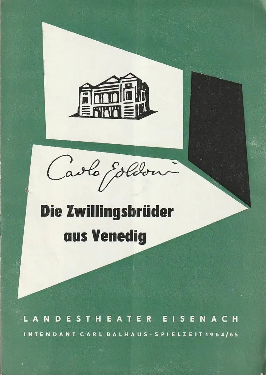 Landestheater Eisenach, Carl Ballhaus, Herbert Bartholomäus: Programmheft Carlo Goldoni DIE ZWILLINGSBRÜDER AUS VENEDIG Premiere 12. Juni 1965 Spielzeit 1964 / 65 Heft 17.