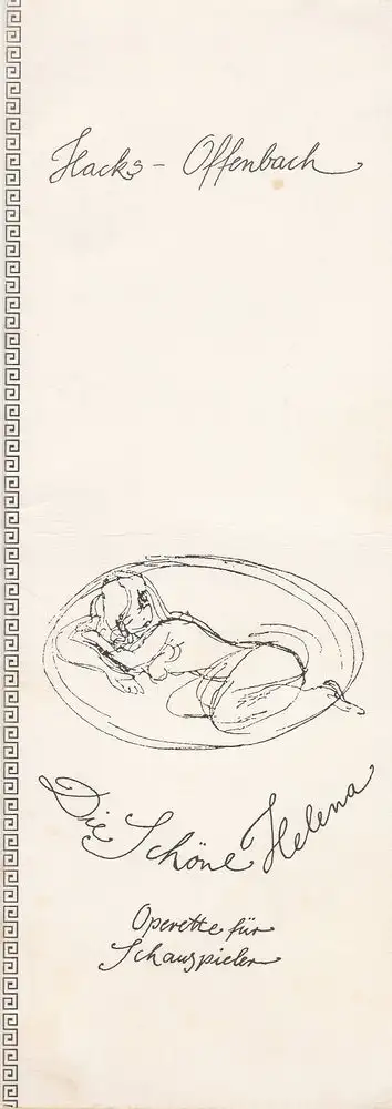 Operette für Schauspieler von Peter Hacks. Regie: Dieter Roth. Bühne: Rolf Klemm. Kostüme: Jutta Harnisch. Musikalische Leitung: Dankwart Pfeiffer, Wolfram Rinker. Choreographie: Hans-Herbert Hoffmann. Mitwirkende: Frank Höhnerbach, Frank-Jürgen Peschke, Karin Weser, Elke Franke, Ursula Sukup, u. a. - Theaterprogramm, Opernprogramm, Ballettprogramm, Musicalprogramm, Konzertprogramm, Theatermemorabilia, Programmhefte Sammlung, deutsche Theatergeschichte.