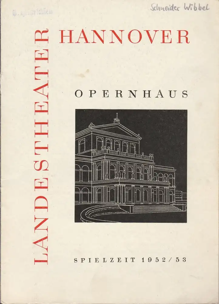 Landestheater Hannover, Walter Hapke: Programmheft Mark Lothar SCHNEIDER WIBBEL Opernhaus Spielzeit 1952 / 53.