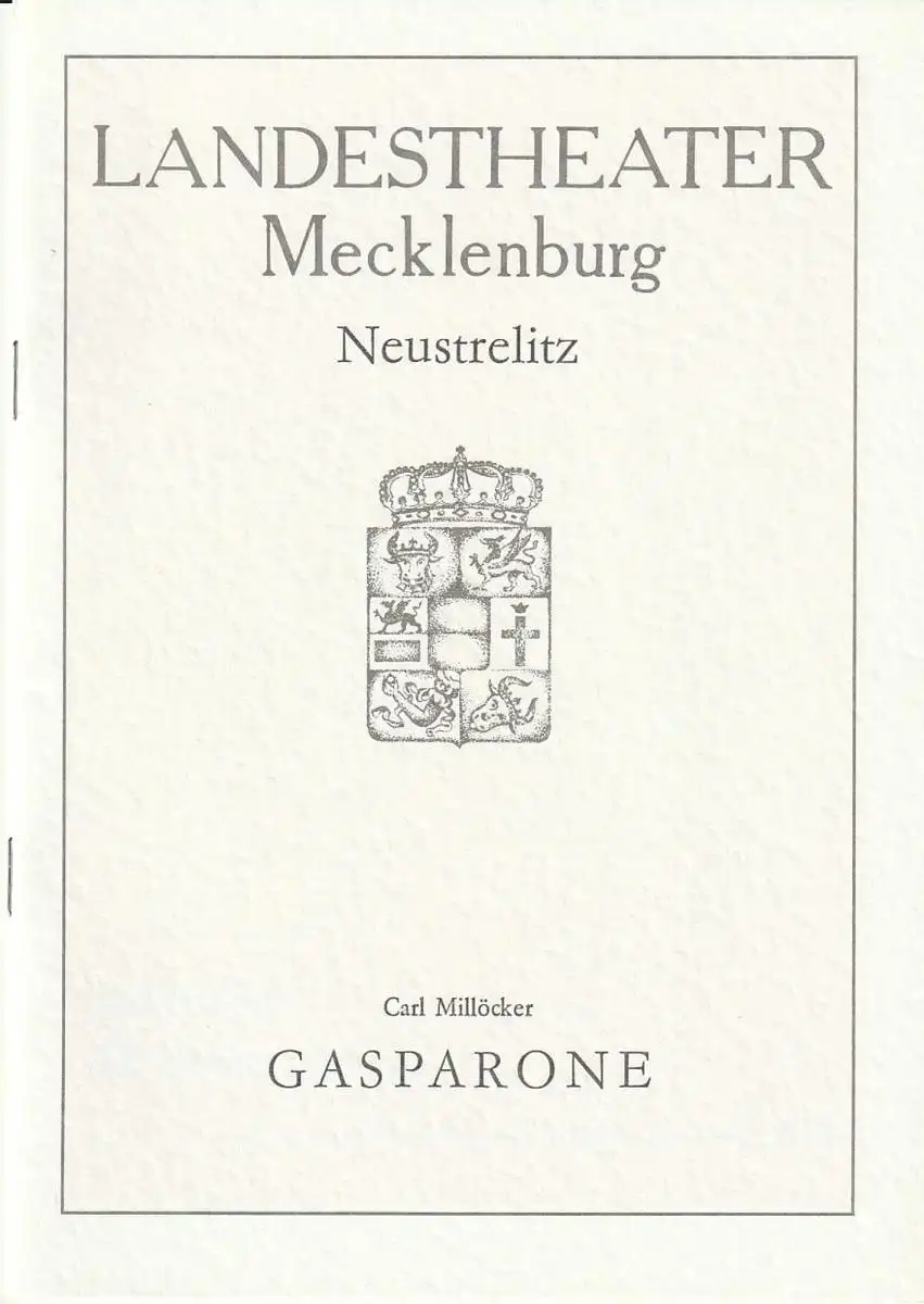 Landestheater Mecklenburg, Neustrelitz, Manfred Straube, Ulrike Pörner, Klaus Weindich: Programmheft Carl Millöcker GASPARONE Premiere 9. Juni 1991 Nr. 14 / 1991.