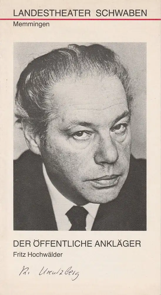 Landestheater Schwaben Memmingen, Peter H. Stöhr, Urs Bircher, Martin Kreutzberg: Programmheft Der öffentliche Ankläger von Fritz Hochwälder. Premiere 12. Februar 1980.