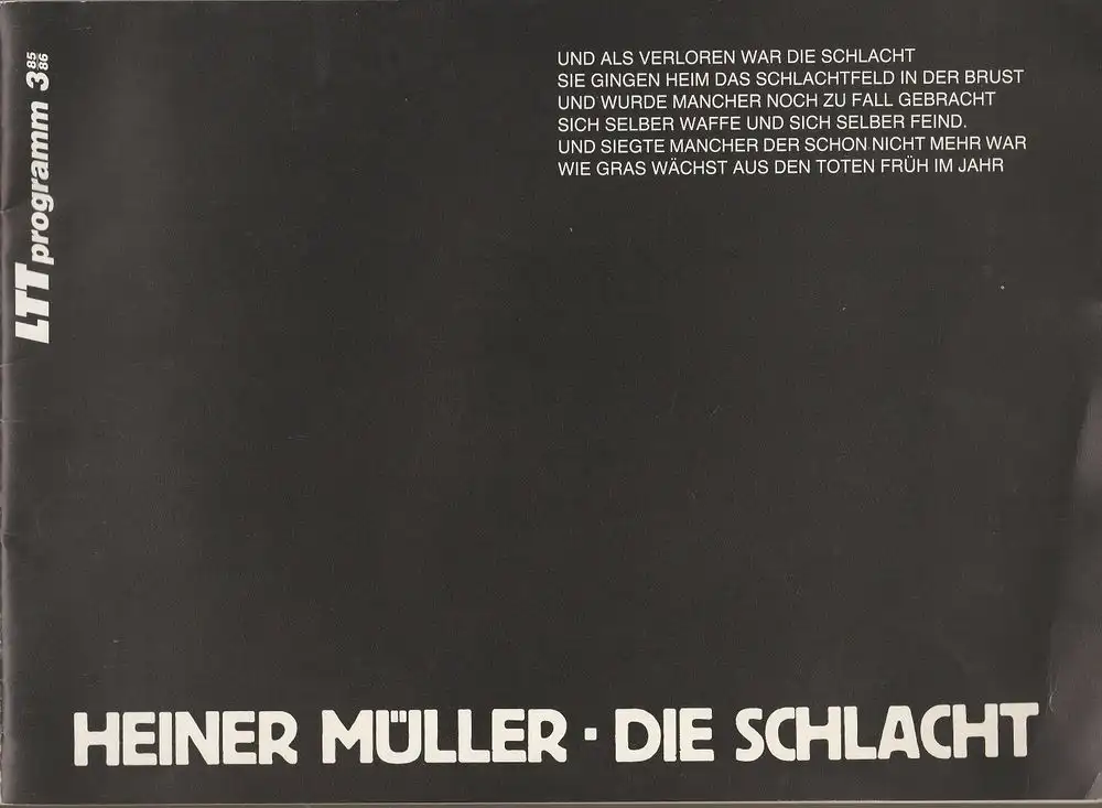 Landestheater Württemberg-Hohenzollern Tübingen LTT, Bernd Leifeld, Hans-Jörg Grell: Programmheft Heiner Müller DIE SCHLACHT. Szenen aus Deutschland. Premiere 20. November 1985.