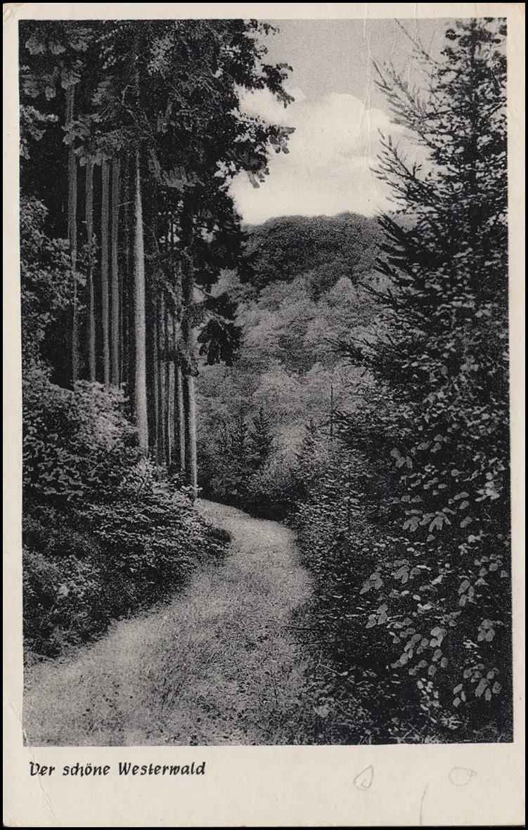 Ansichtskarte: Der schöne Westerwald / Absenderstempel: Gasthof-Pension P. Schneider in Muscheid