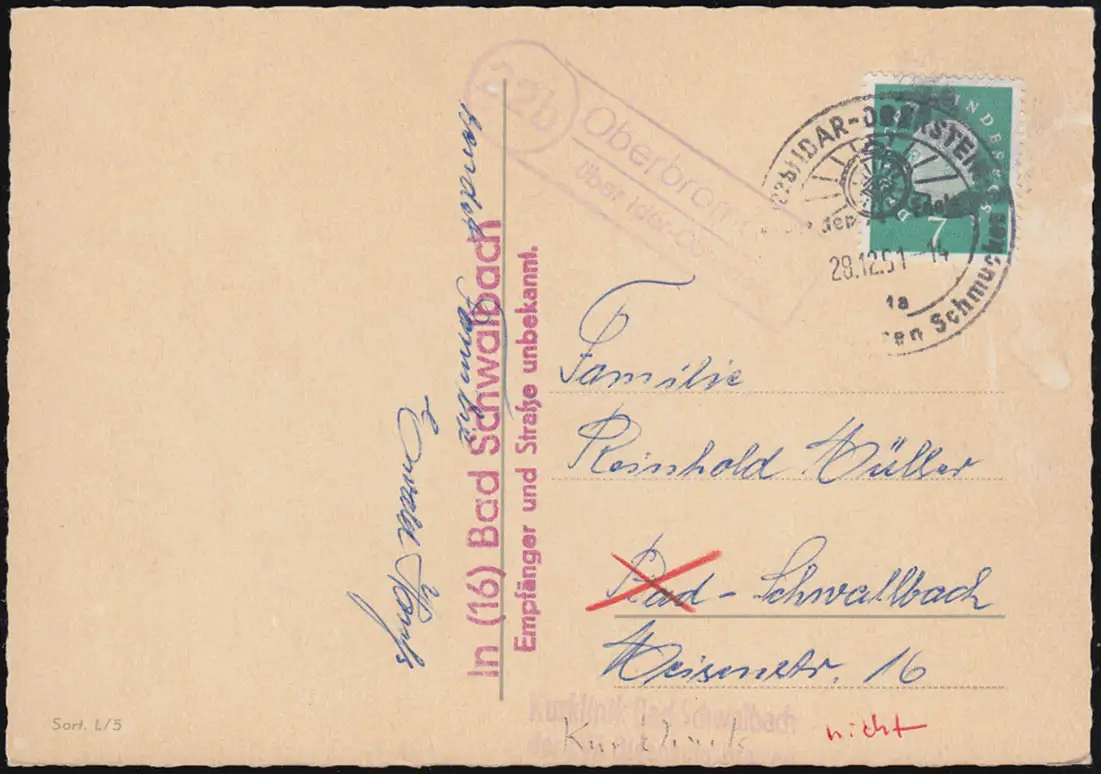 Landpost Ansichtskarte Winterstimmung, Oberbrombach über Idar-Oberstein 29.12.51