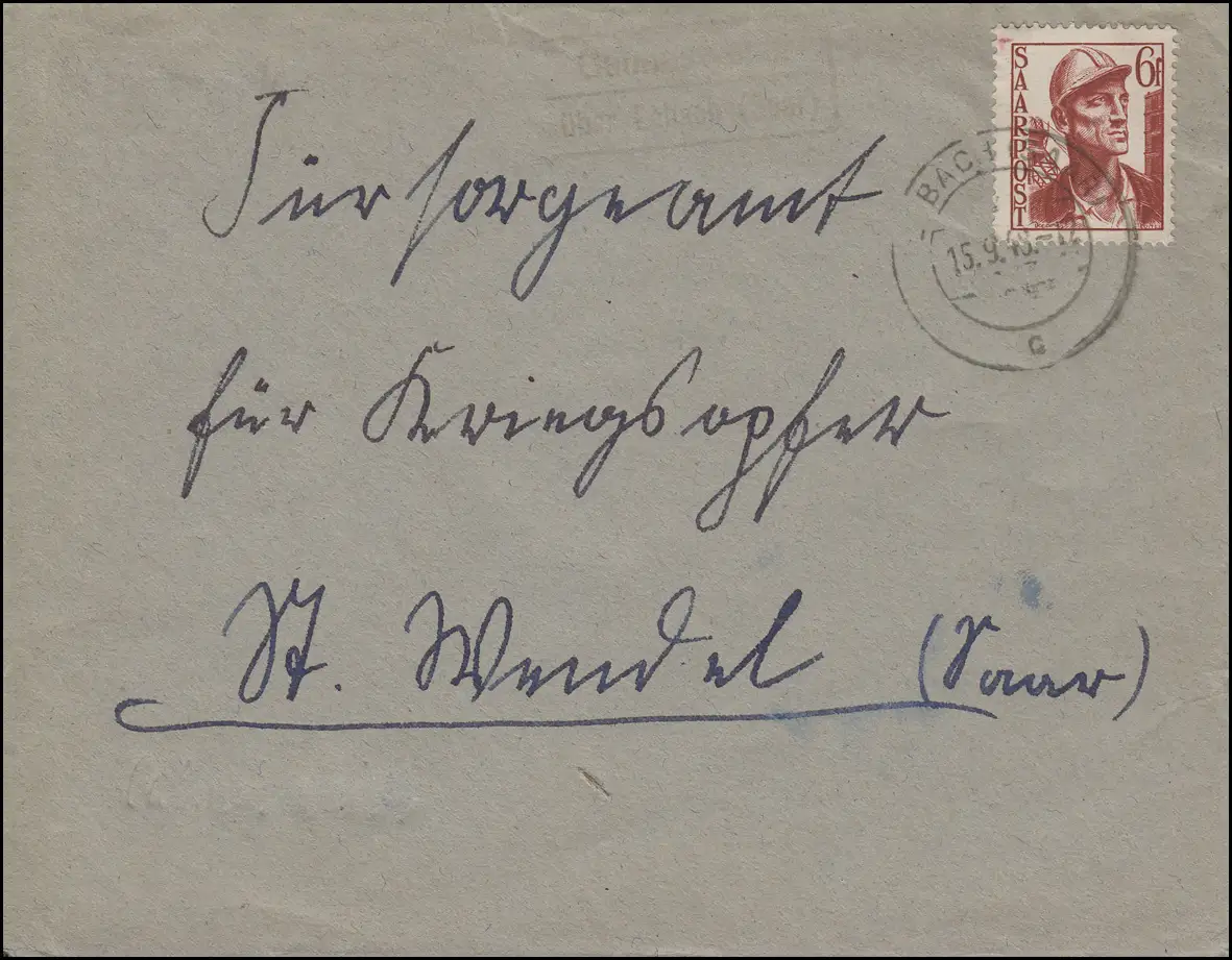 Landpost Calmesweiler über LEBACH (SAAR) 15.9.1948 nach St. Wedel