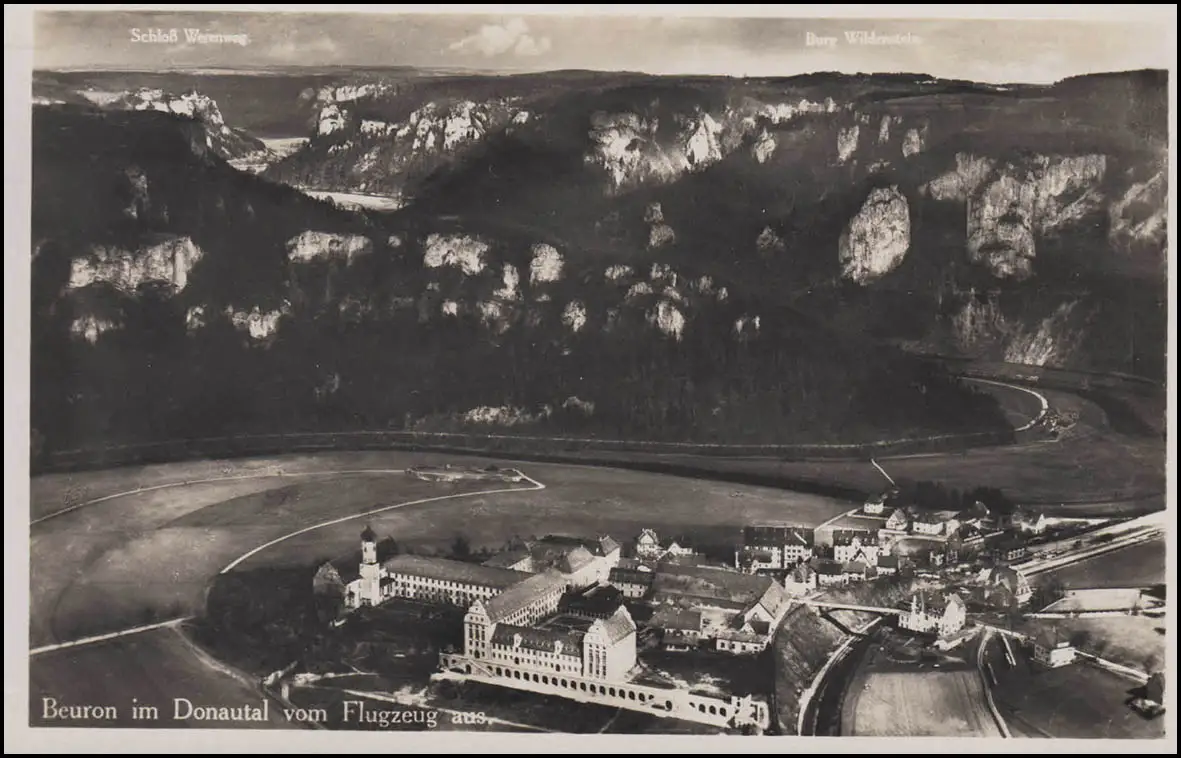 Landpost DURCHHAUSEN über TUTTLINGEN 25.8.42 auf Luftaufnahme BEURON im Donautal