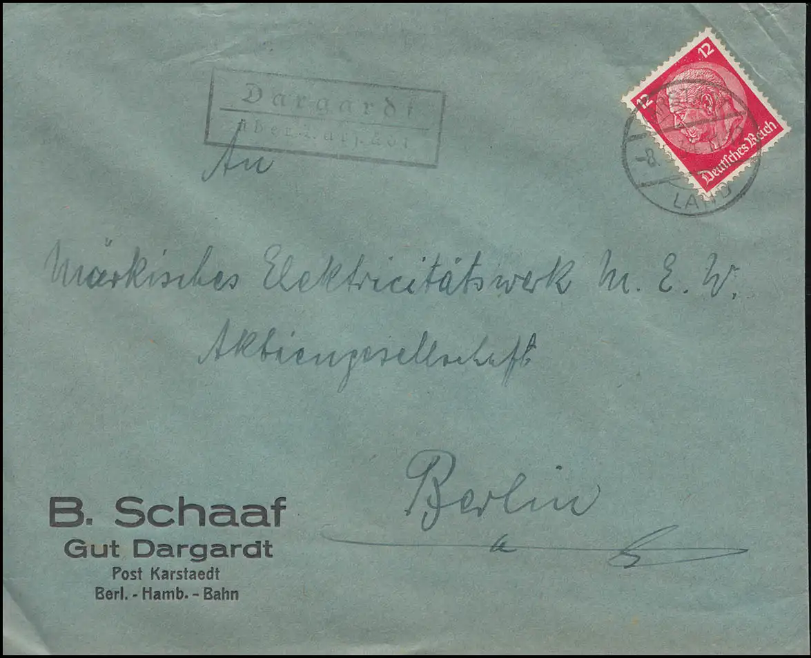 Landpost Dargardt über Karstädt - Brief KARSTÄDT LAND 8.5.34