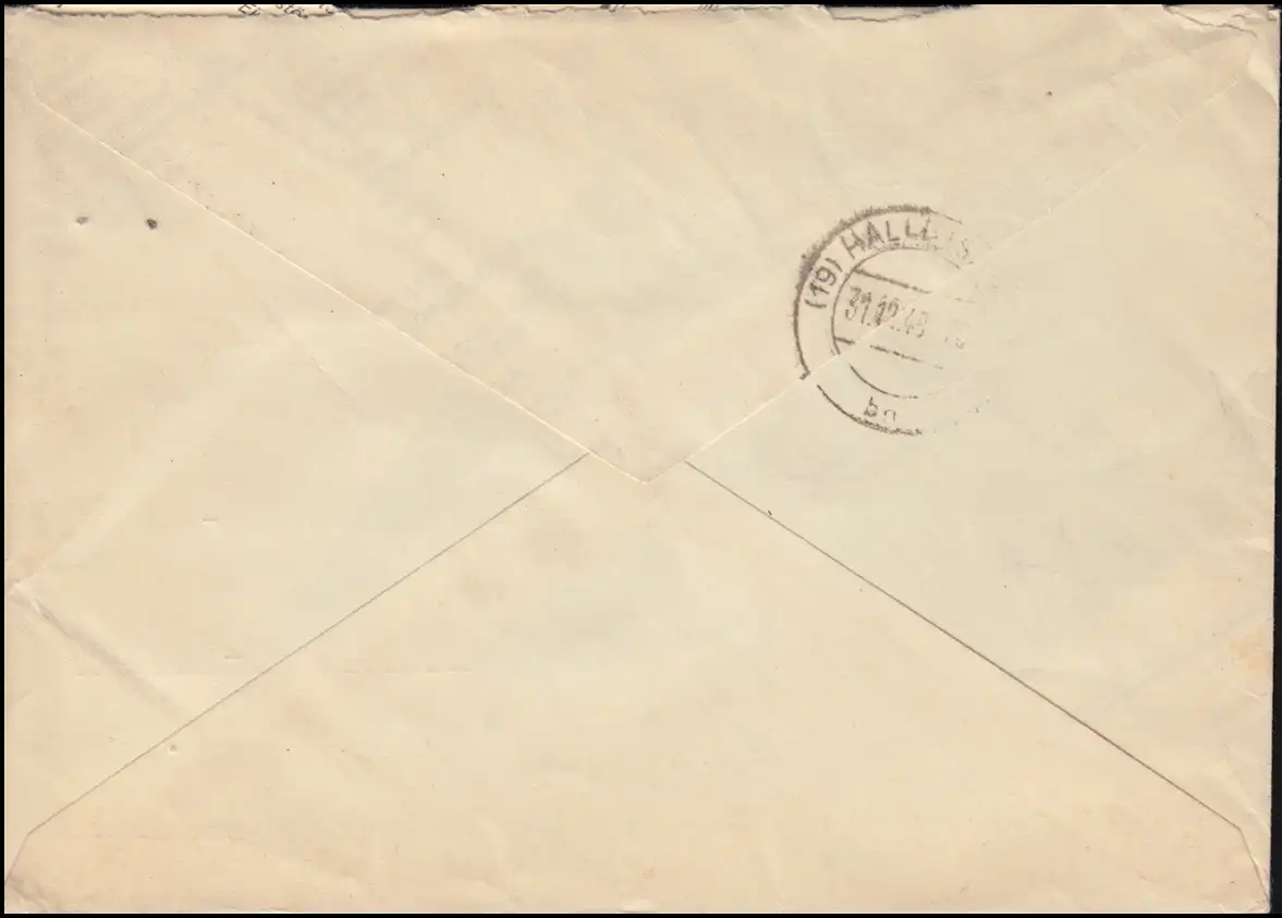 Landpost Ellenberg über SALZWEWDEL R-Brief Not-R-Zettel 29.12.48 n. Halle/Saale