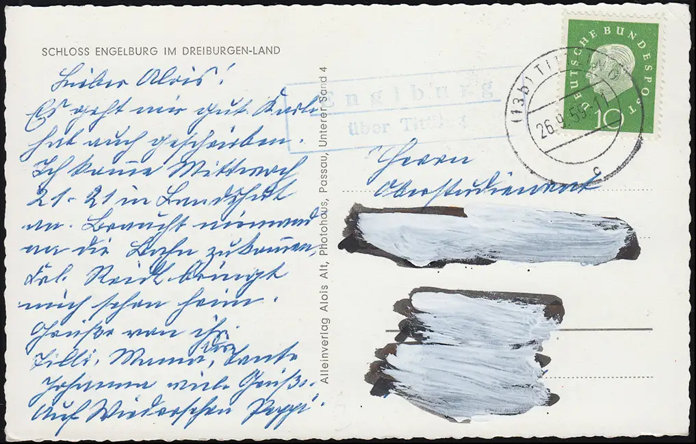 Landpost Engelburg über TITTLING 26.9.59 auf AK Schloss im Dreiburgen-Land
