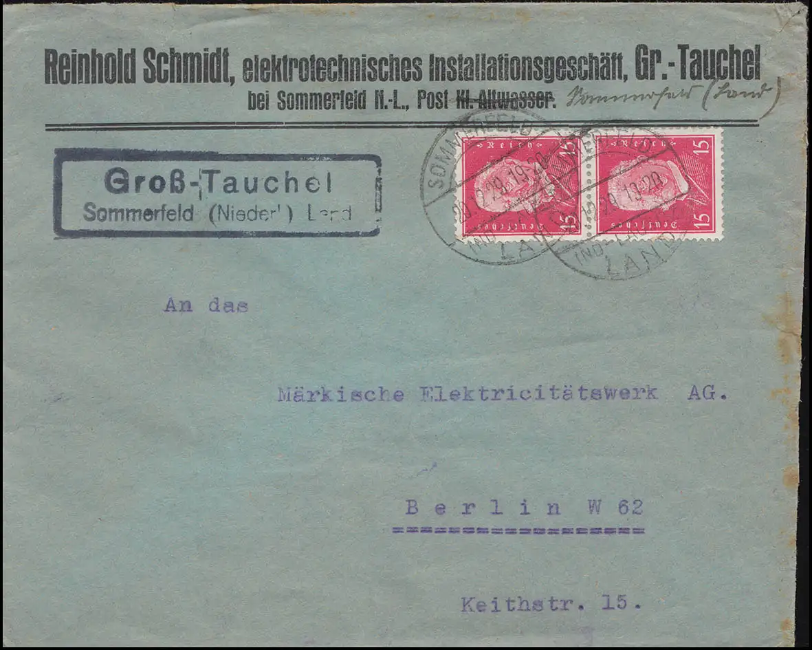 Landpost Groß-Tauchel Sommerfeld Niederlausitz Land, Brief 20.12.29