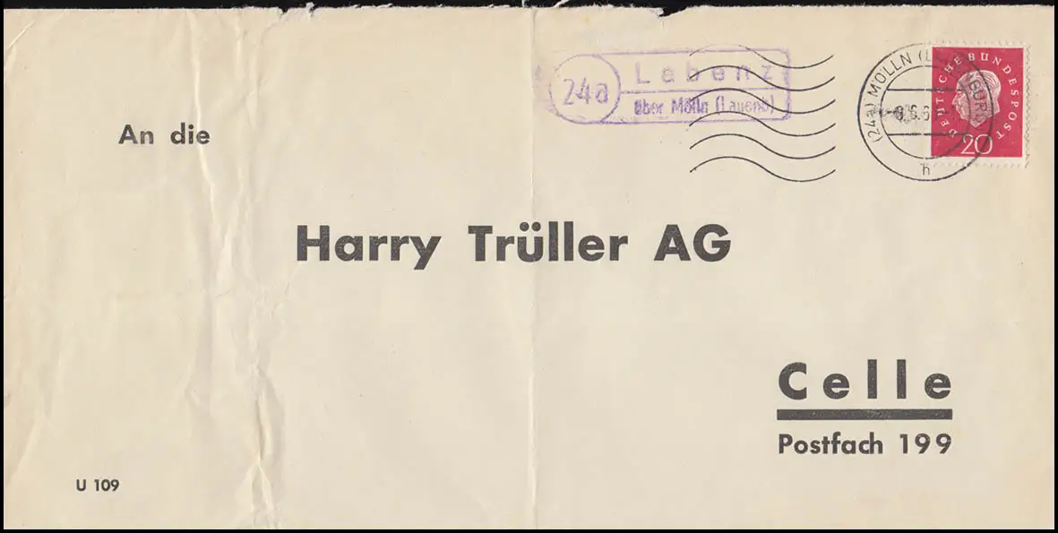 Landpost Labenz über Mölln / Lauenburg Bedarfserhaltung/senkrechter Briefbug