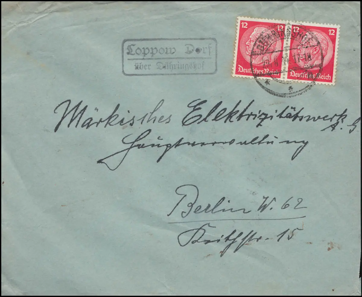 Landpost Loppow Dorf über Dühringshof 29.8.1934