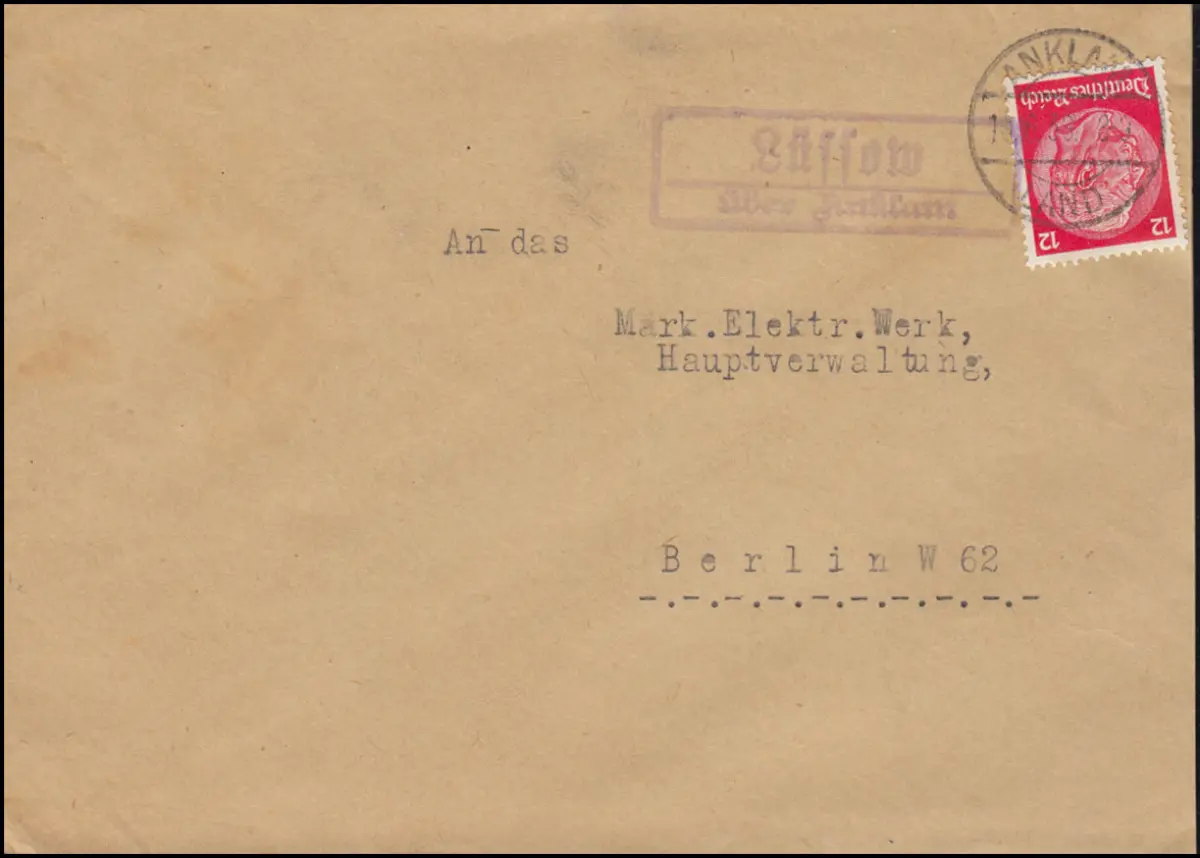 Landpost Lüssow über Anklam Juni 1939