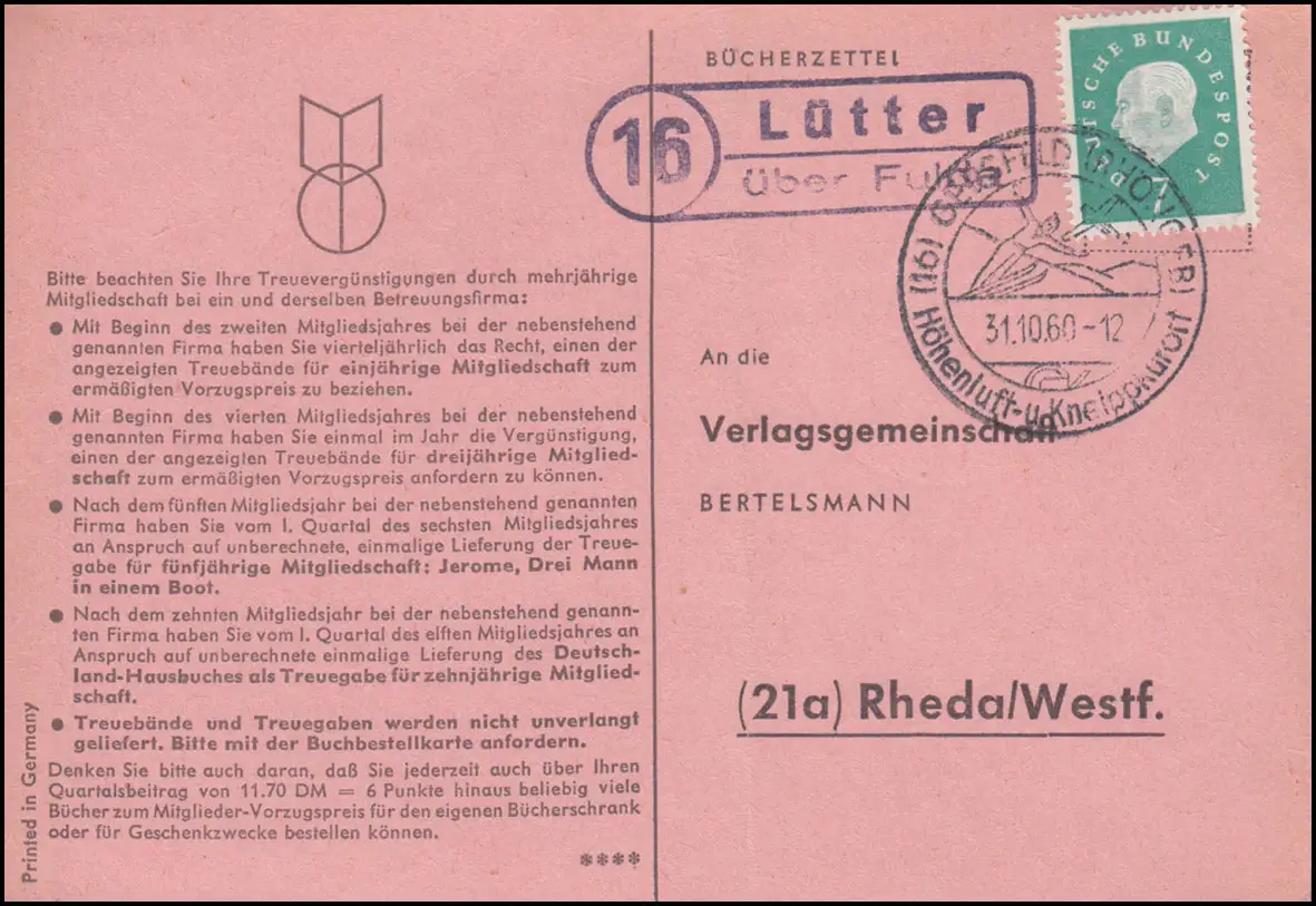 Landpost Lütter über Fulda auf Postkarte SSt GERSFELD (RHÖNGEB.) 31.01.1960