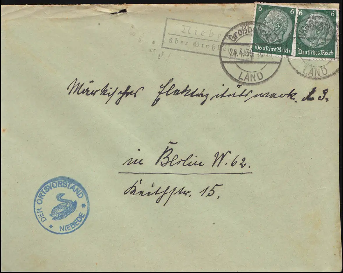 Landpost Niebede über Großbehnitz auf Brief GROßBEHNITZ LAND 24.4.36