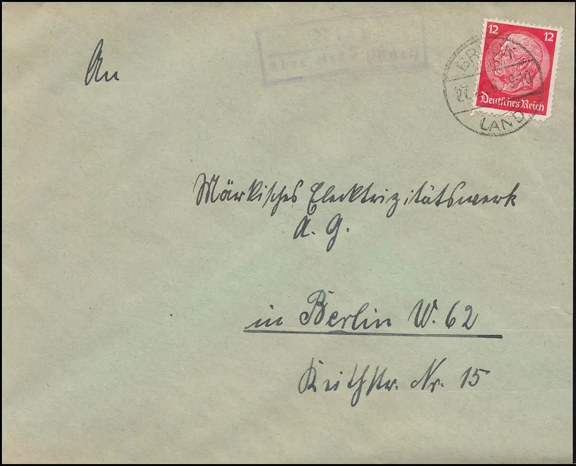 Landpost Rietz über Brück Mark Land, Brief BRÜCK 27.2.36