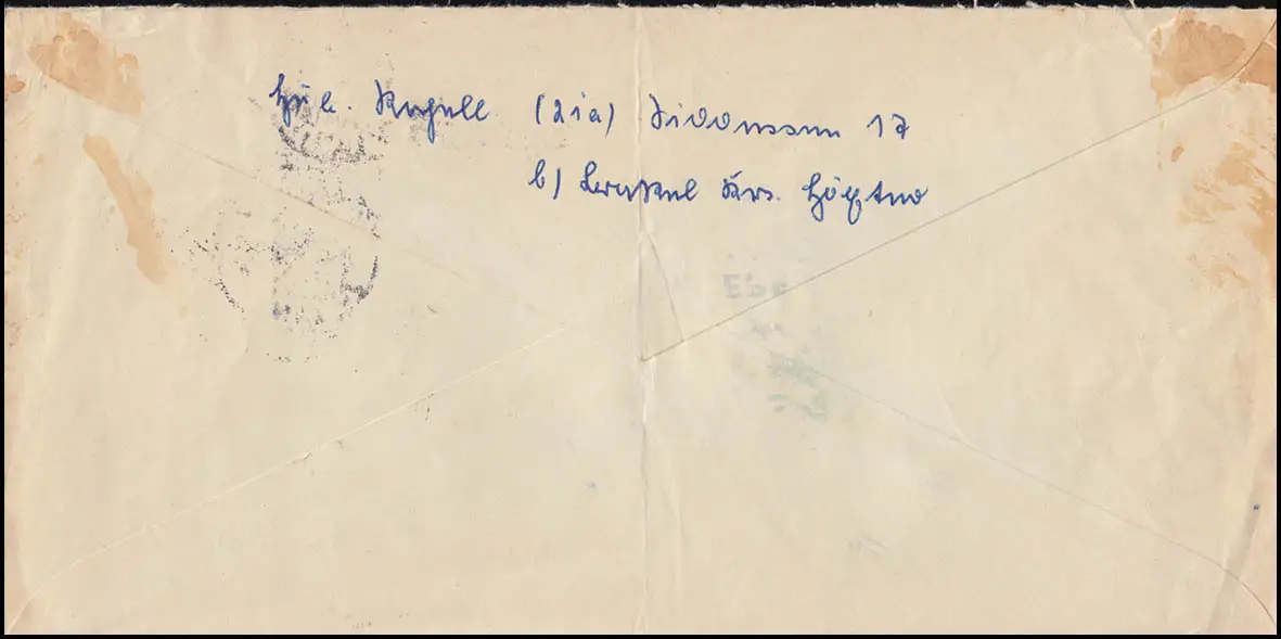 Landpost Siddessen über Brakel Land 1958 Bedarfserhaltung/senkrechter Briefbug