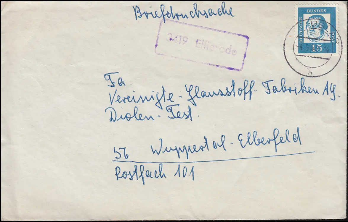 Landpost-Stempel 3419 Ellierode auf Briefdrucksache USLAR 4.5.1963
