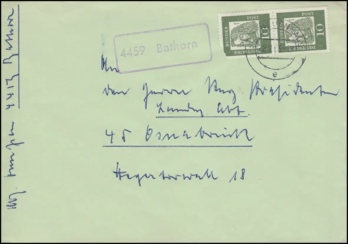 Landpost-Stempel 4459 Bathorn auf Brief NEUENHAUS 22.2.1963