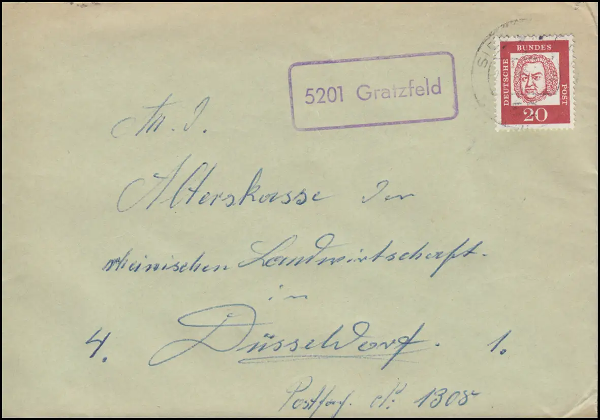 Landpost-Stempel 5201 Gratzfeld auf Brief SIEGBURG 1963
