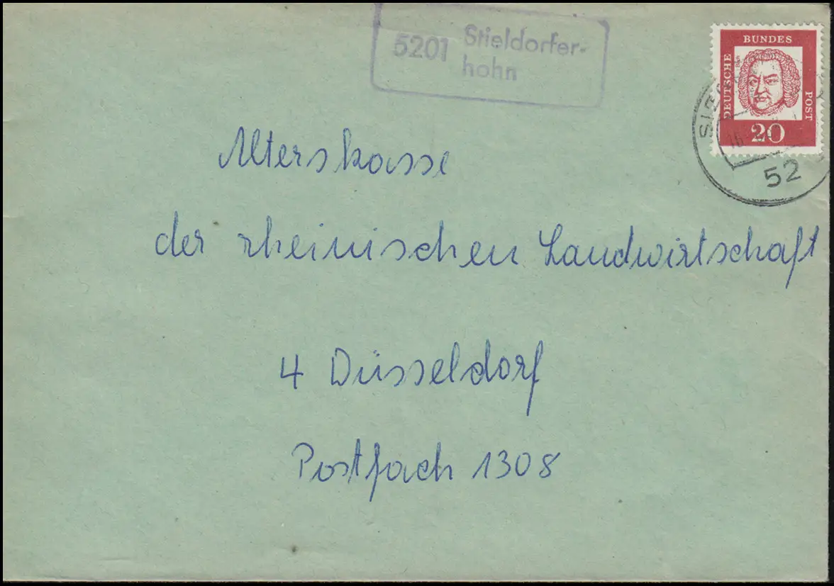 Landpost-Stempel 5201 Stieldorferhohn auf Brief SIEGBURG 16.8.1963