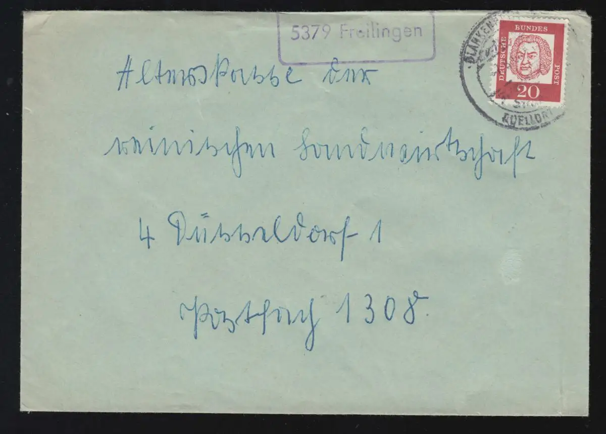 Landpost-Stempel 5379 Freilingen auf Brief SSt BLANKENHEIM Quellort der Ahr 1963
