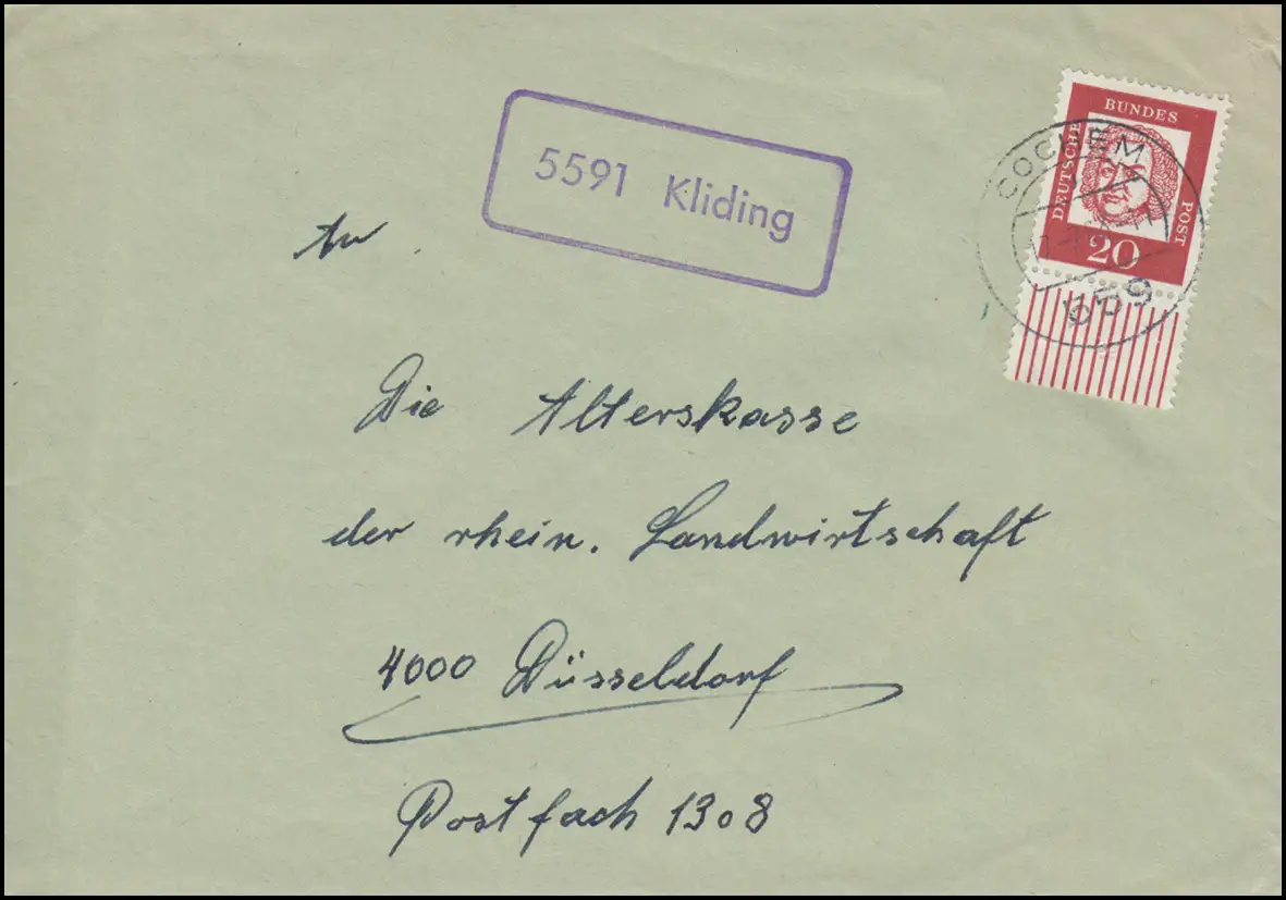 Landpost-Stempel 5591 Kliding auf Brief COCHEM 17.7.1963