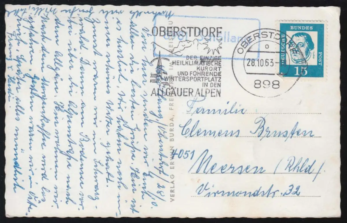 Landpost-Stempel 8981 Schöllang auf AK St. Peter, OBERSTDORF 28.10.1963
