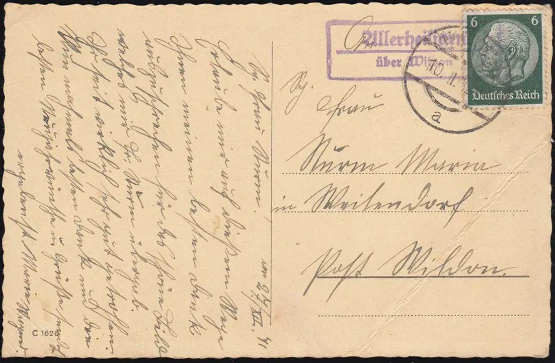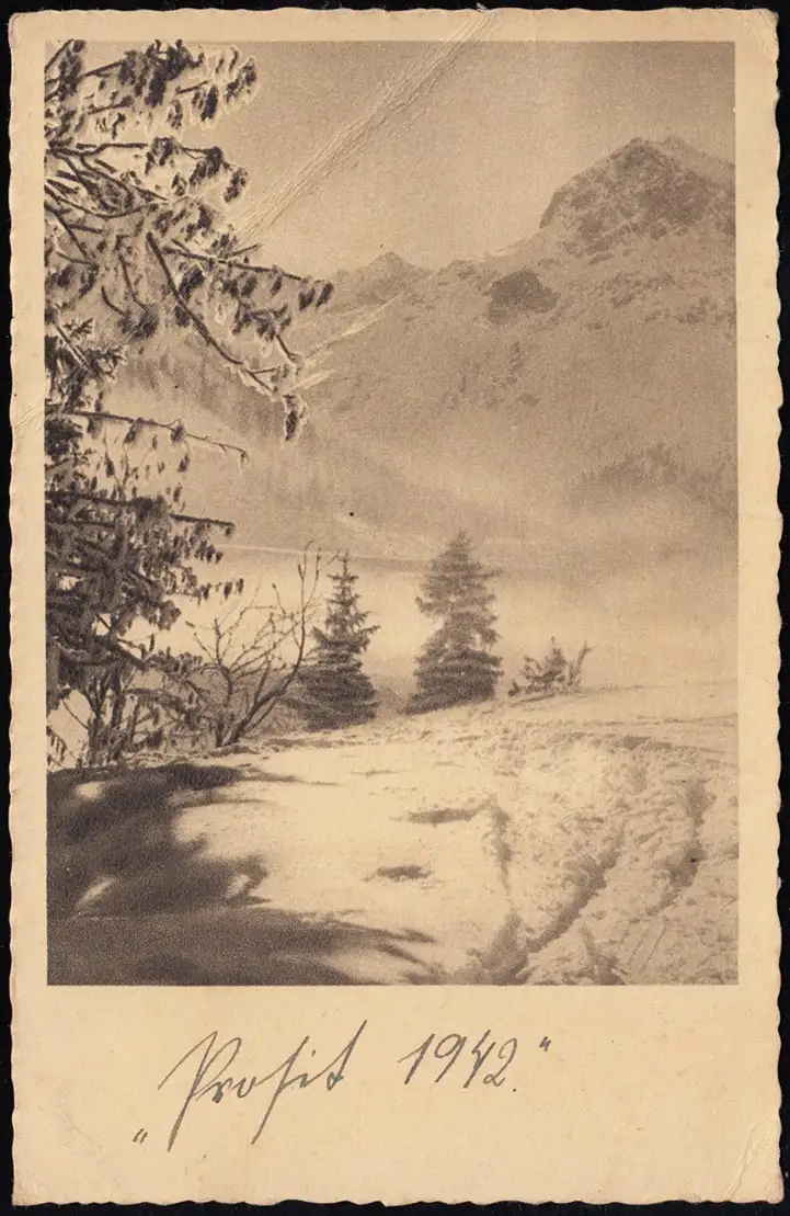 Landpost-Stempel Allerheiligen über Wildon 10.1.1942 auf AK Prosit 1942