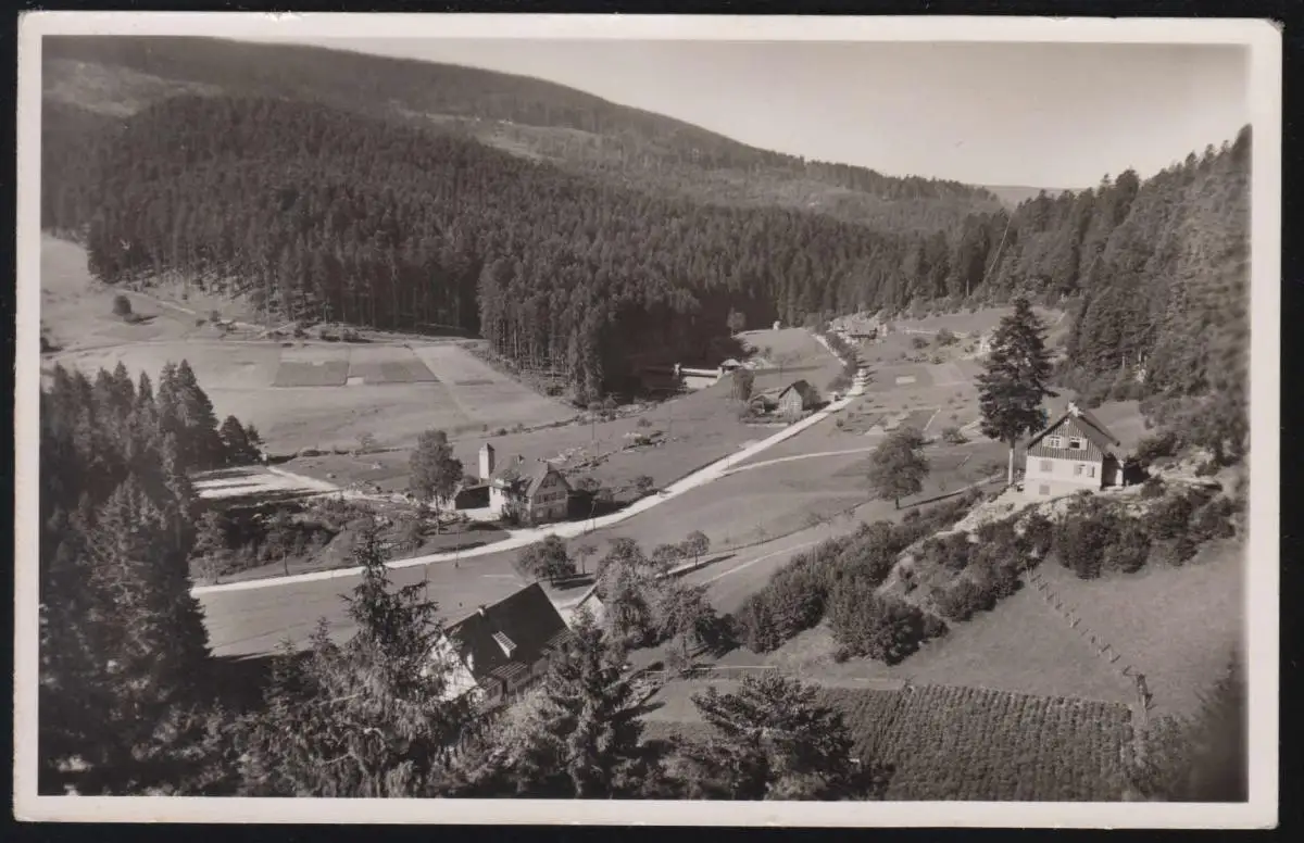 Landpost-Stempel Erbersbronn über FORBACH / BADEN auf passender AK, um 1952