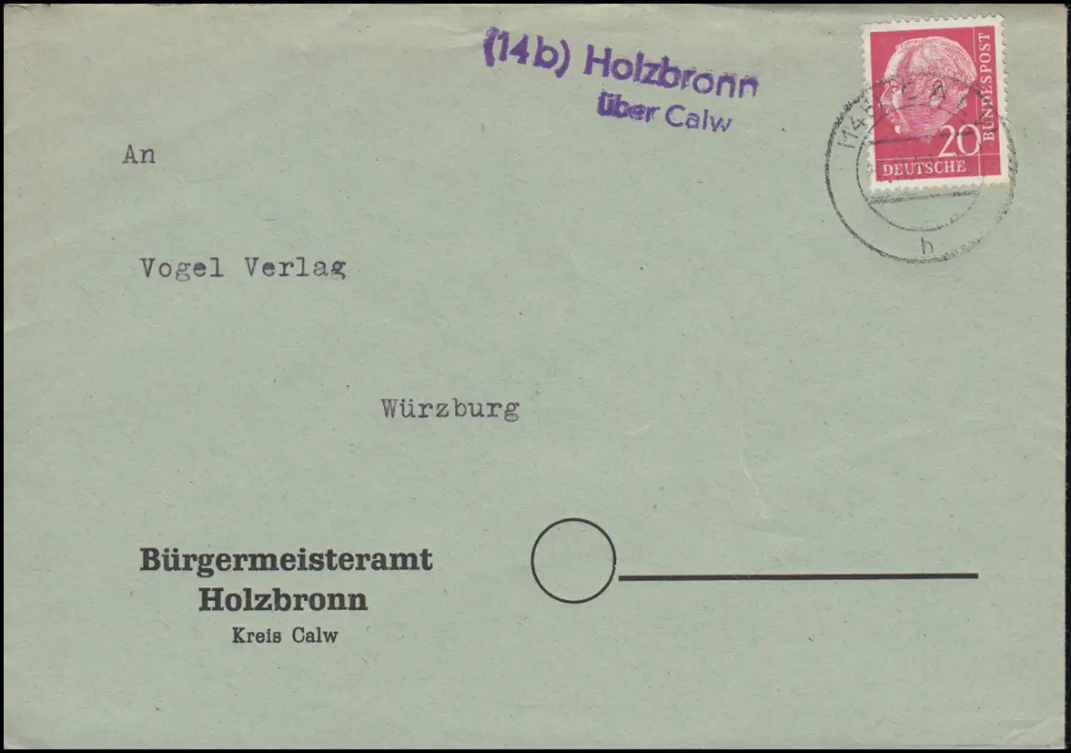 Landpost-Stempel Holzbronn über CALW 5.11.1958 auf Brief